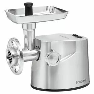 М'ясорубка працює з максимальною потужністю 2000 Вт. Вона має три грати з різним діаметром отворів для різного ступеня помелу (8, 5,3 мм). Модель також укомплектована насадкою для виготовлення ковбас. М'ясорубка легко збирається та розбирається після використання. Її знімні частини можна мити в посудомийній машині. Ніж моделі виготовлений із якісної нержавіючої сталі. Для максимального продовження експлуатаційного періоду м'ясорубка має захисний механізм, що запобігає перегріву двигуна. У базову комплектацію входить також штовхач для продуктів, насадка для фаршу і металевий лоток.