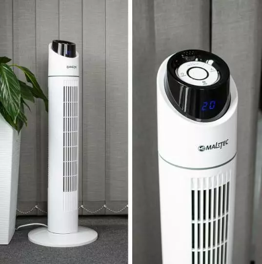 Колонний вентилятор замість класичного оснащений турбінним вентилятором, який обдуває всю висоту вентилятора.