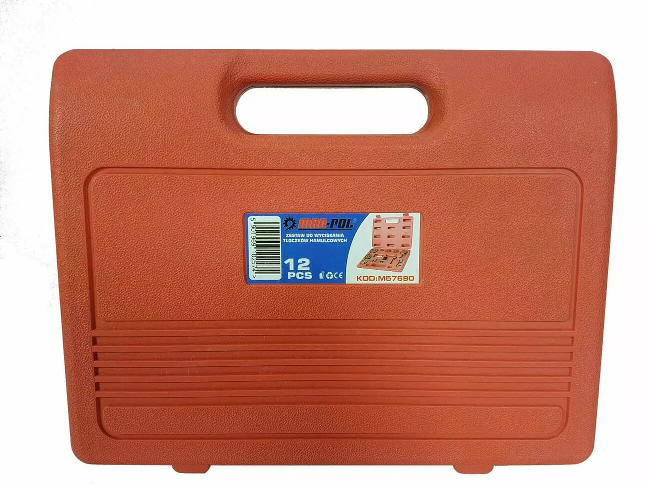 Набір для обслуговування гальмівних циліндрів M57690 універсальний набір інструментів для поділу гальмівних колодок із ручним приводом. Кожен інструмент у комплекті буде корисним у процесі роботи з гальмівною системою, завдяки чому представлений набір є універсальним. У комплектацію включено 12 предметів. Крім того, для комфортного зберігання та транспортування набір поставляється у пластиковому кейсі. Інструменти широко застосовуються на станціях технічного обслуговування та в автомайстернях. Дозволяє виконувати вручну роботу, не пошкоджуючи прокладки в поршнях.