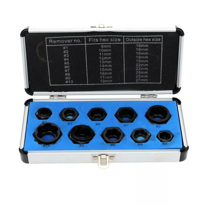 Комплект включає ковпачки в 10 розмірах: 9, 10, 11, 12, 13 , 14, 15, 16, 17 і 19 мм.