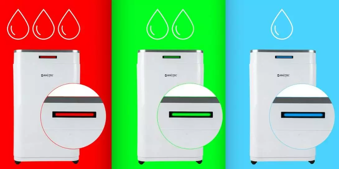 Осушувач сам подасть сигнал про повний бак. Він засвітиться індикатором «Waterfull» і подасть звуковий сигнал, коли резервуар потрібно спорожнити, і він припинить роботу, щоб запобігти переповненню води.