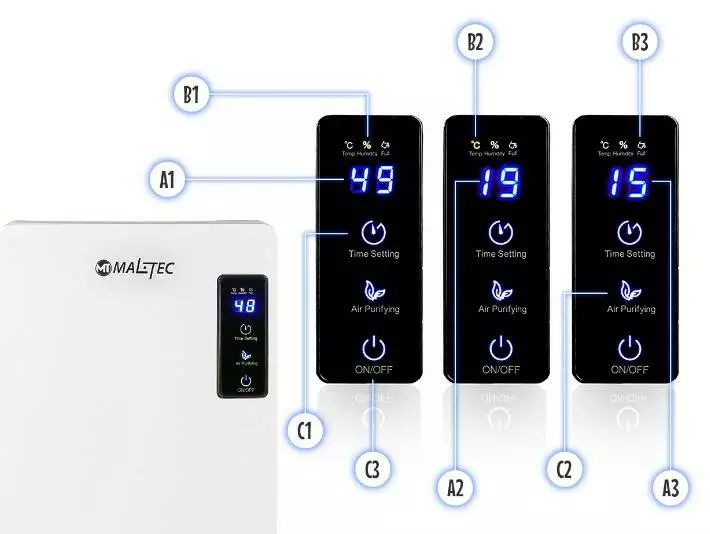 Датчик, встановлений у представленому осушувачі, зчитує поточну вологість приміщення, в якому він знаходиться.