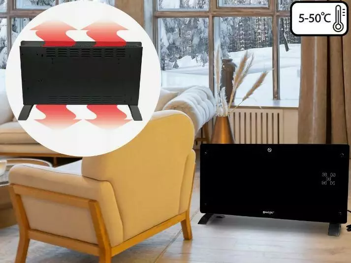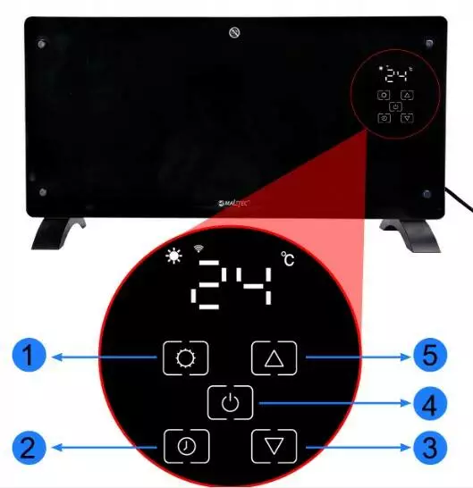 Скляний конвекційний обігрівач Maltec Eco Wi-Fi термостат чорний