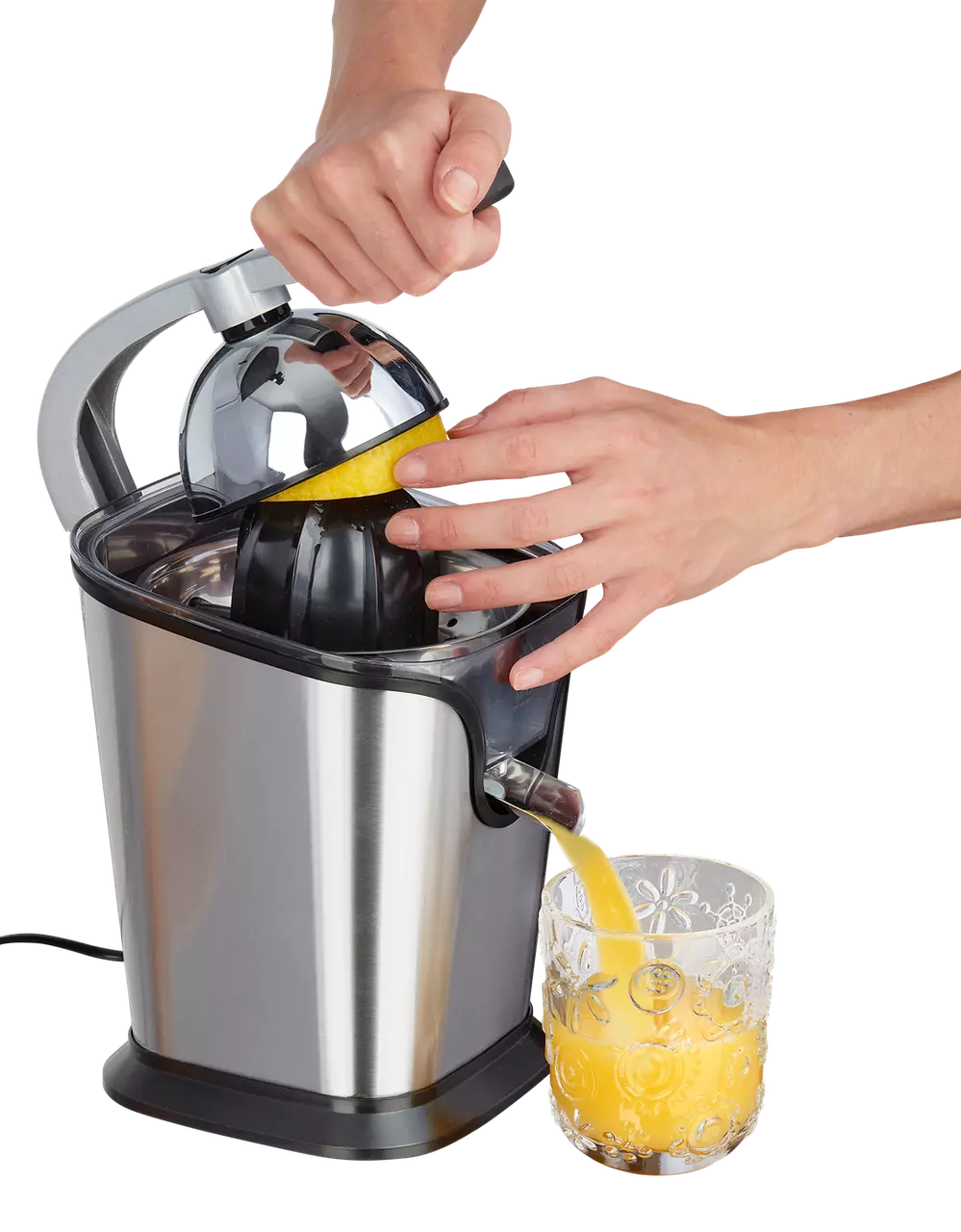 - Соковитискач містить 2 прес-конуси для, наприклад, лимонів, апельсинів, лаймів і т.д.