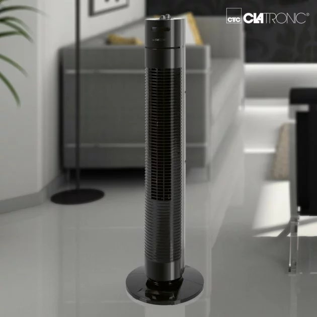 Вентилятор Clatronic TVL-3770 у новому сучасному форматі строгого дизайну чудово вписується в будь-яке службове або житлове приміщення, не перевантажує інтер'єр і займає дуже мало місця. Якщо купити вентилятор Clatronic TVL-3770, то для створення комфортних умов роботи чи відпочинку вам достатньо буде лише включити його в мережу, активувати бажані налаштування, і приступити до своїх поточних справ та обов'язків. Вентилятор невибагливий, працює безшумно і не вимагатиме до себе вашої уваги, а через встановлений час самостійно відключиться. Оригінальний форм-фактор на надійній підставці з прогумованими ніжками має всі затребувані на сьогоднішній день функції: регулювання інтенсивності обдування, (відключається) осциляція з діапазоном 75 градусів, таймер на 2 години безперервної роботи.