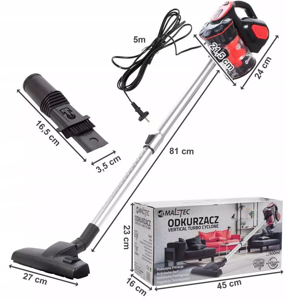 Вертикальний ручний пилосос MALTEC vertical turbo cyclone 5 в 1 (108023)